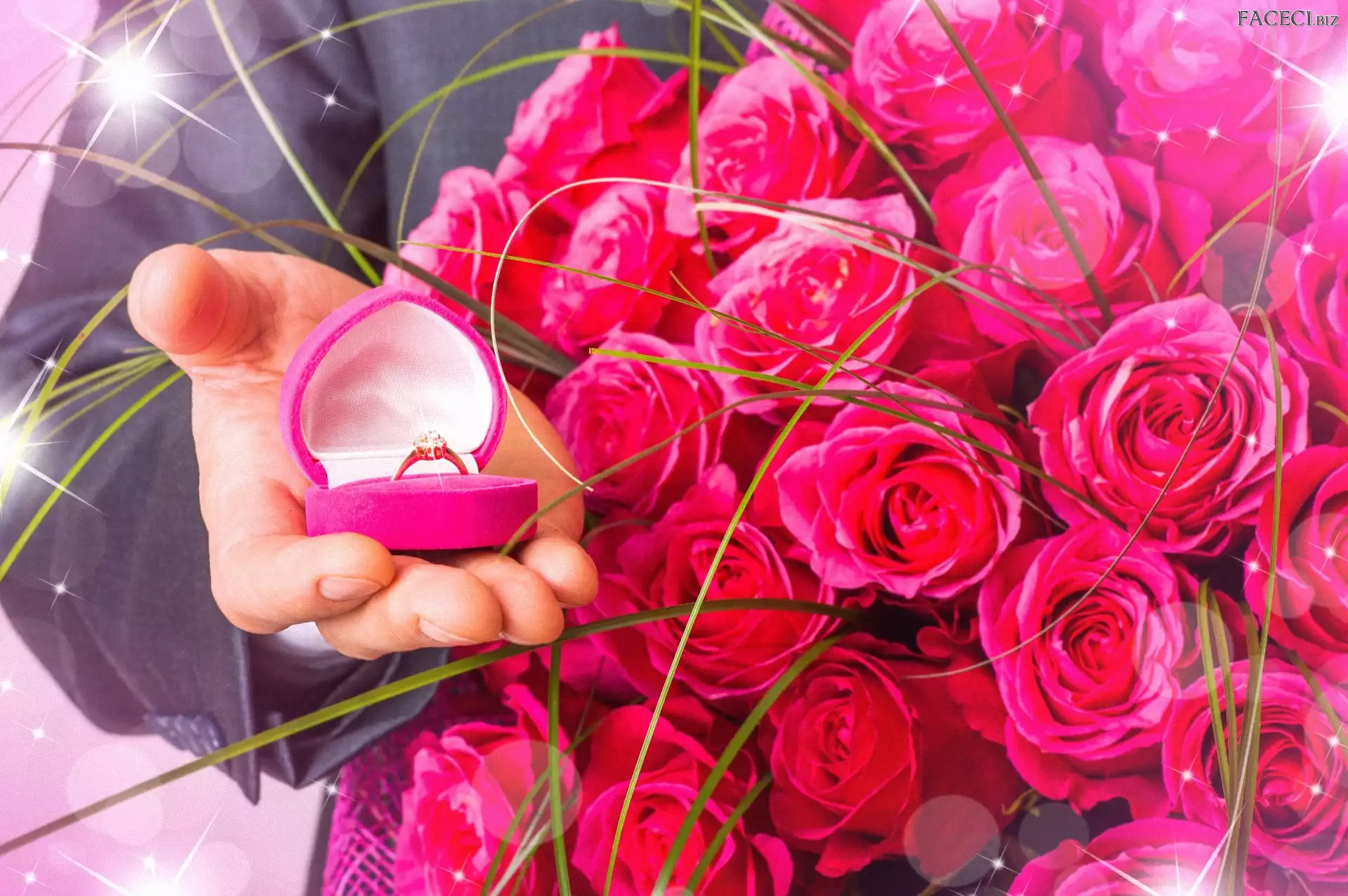 Pierścionek, Róż, Mężczyzna, Bukiet - faceci.biz
