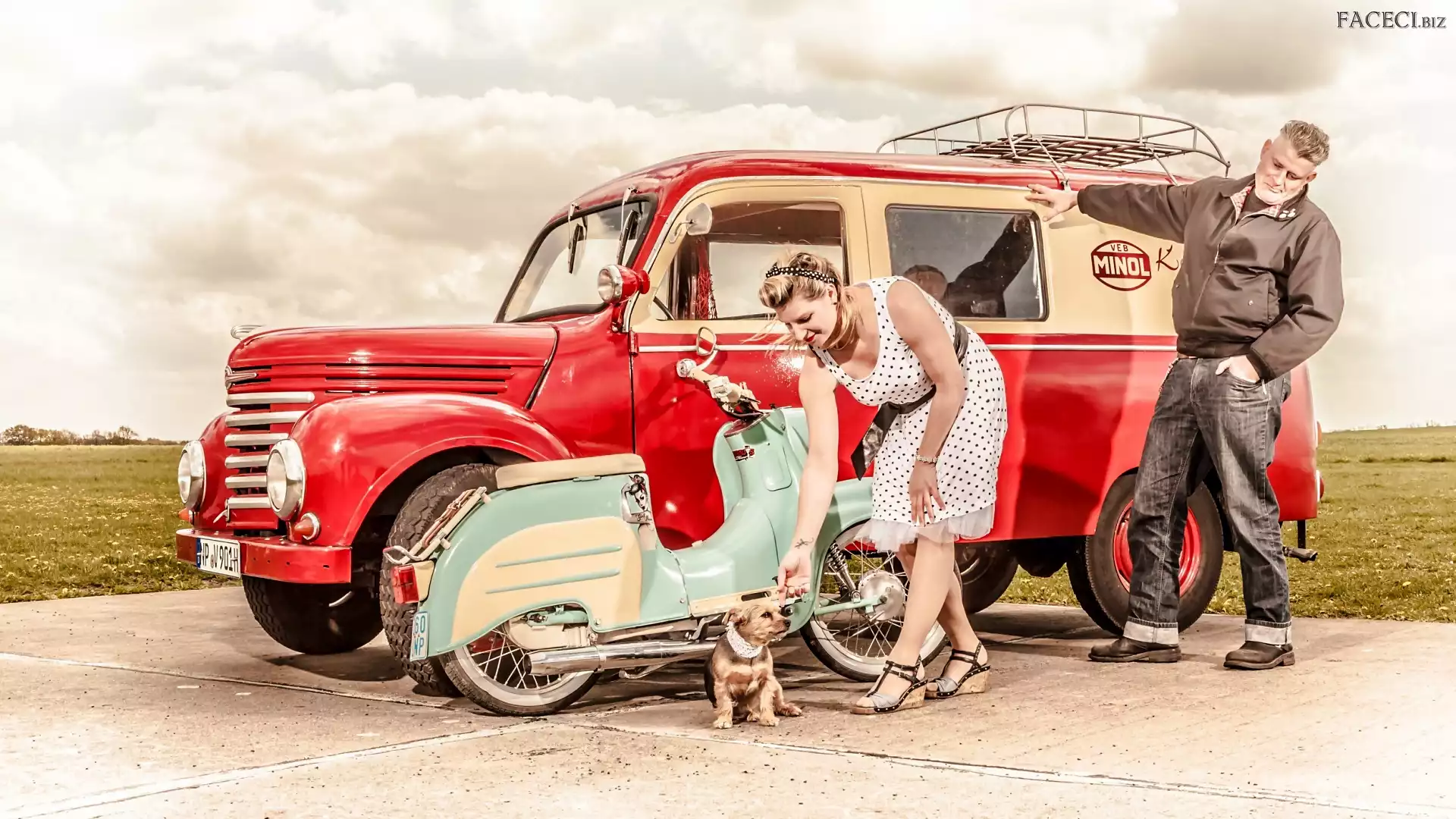 Samochód, Kobieta, Wycieczka, Pies, Mężczyzna, Skuter - faceci.biz